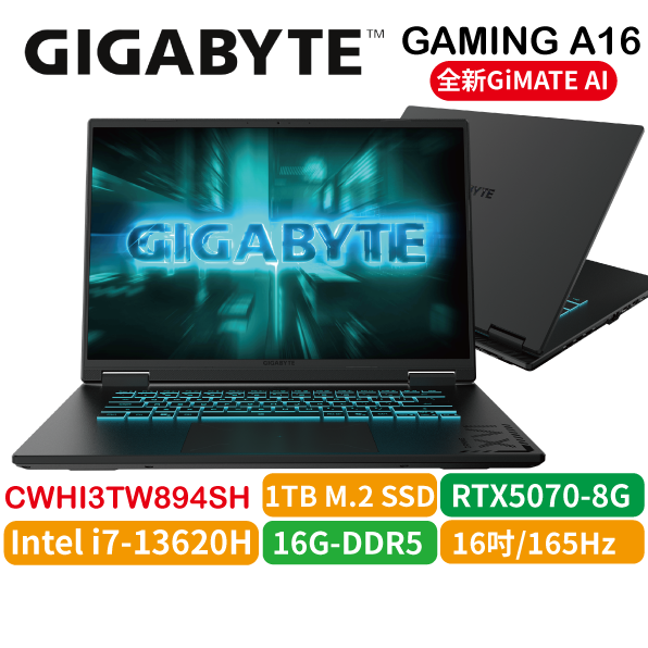 預購 GIGABYTE 技嘉 16吋 GAMING A16 CWHI3TW894SH【鋼鐵黑】 i7-13620H RTX5070 電競筆電